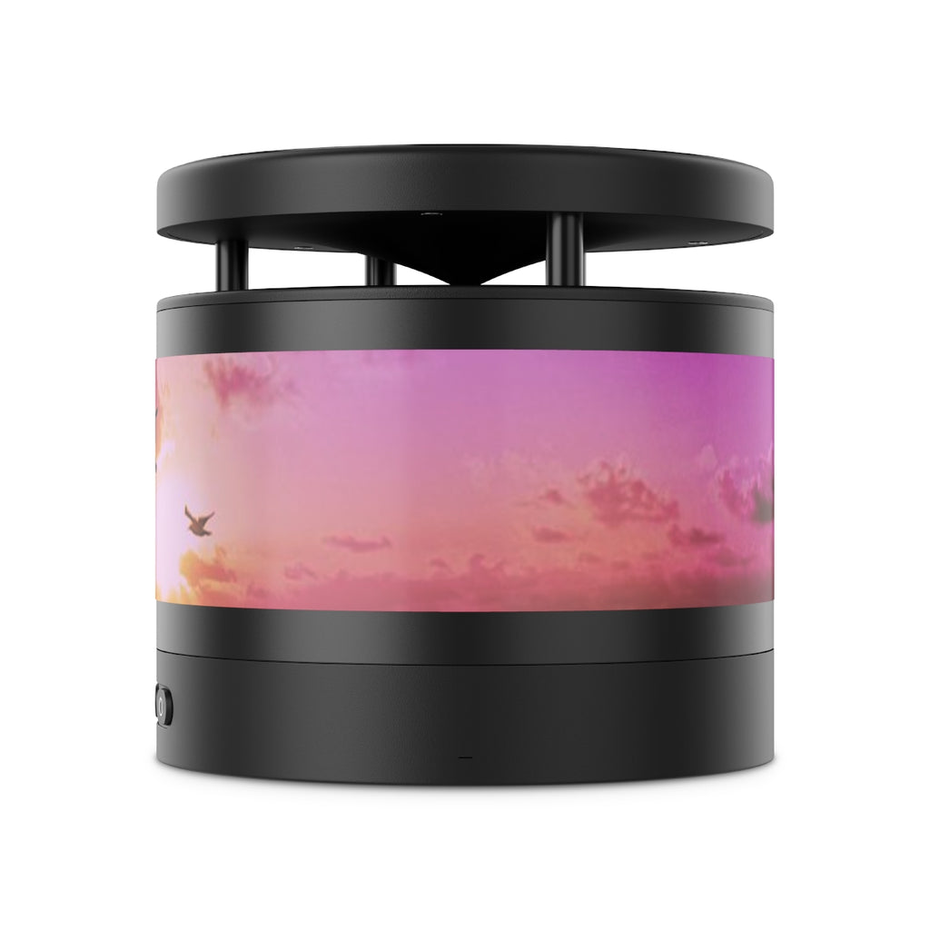Equipped with Bluetooth version 4.2, a 33ft connection range, and a 3W output, this Aluminum-bodied, personalized Bluetooth speaker delivers crystal clear sound anywhere you go. Connect any Android/ iOS phone (including iPhone X) and listen at max volumes for over 2 hours. The top part of the speaker is a smart wireless charging pad. Package includes: 2 in 1 USB charging cable & 3.5mm Aux cable.